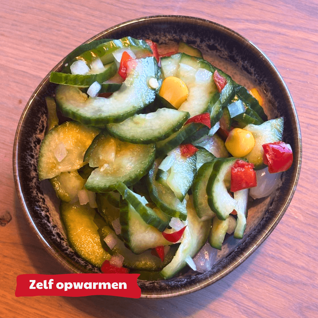 Deze frisse komkommersalade brengt je Molukse maaltijd perfect in balans. Lekker knapperig, een vleugje zoet en precies genoeg zuur om je smaakpapillen wakker te schudden. Ideaal bij kruidige gerechten of gewoon als frisse bite tussendoor!